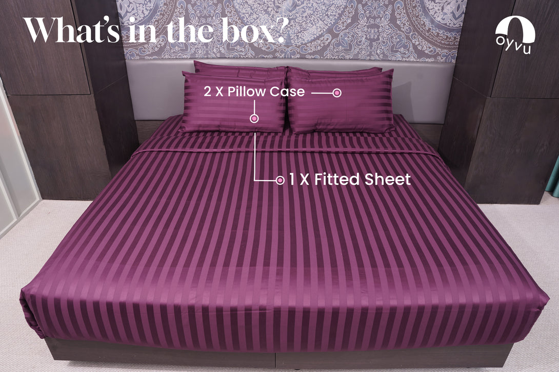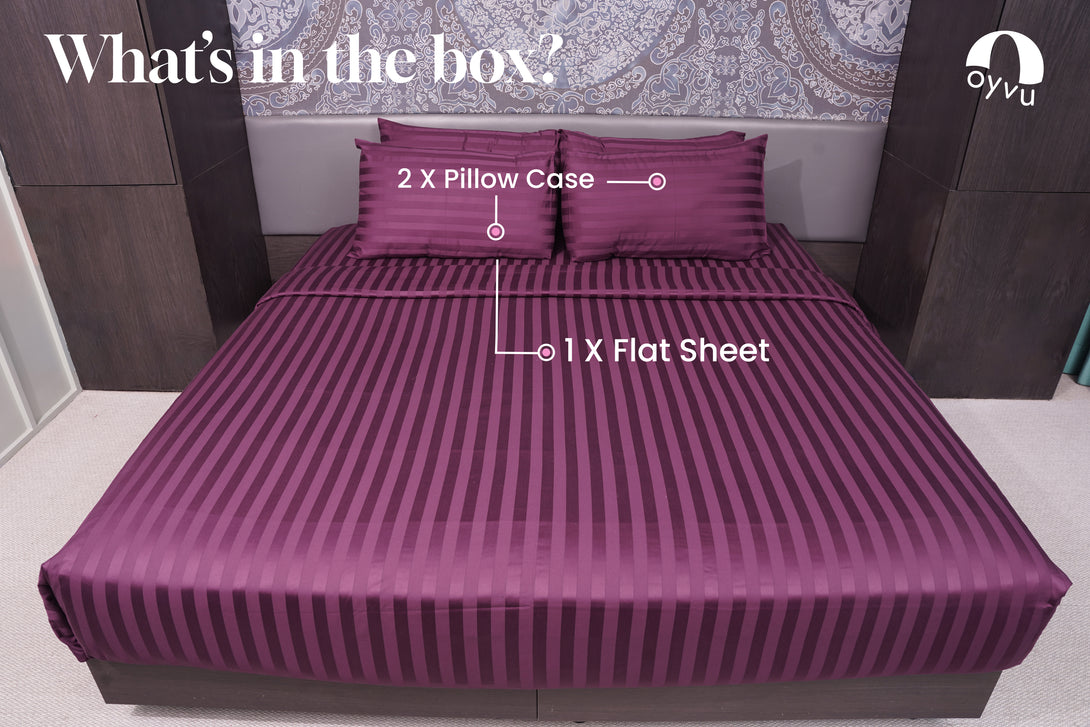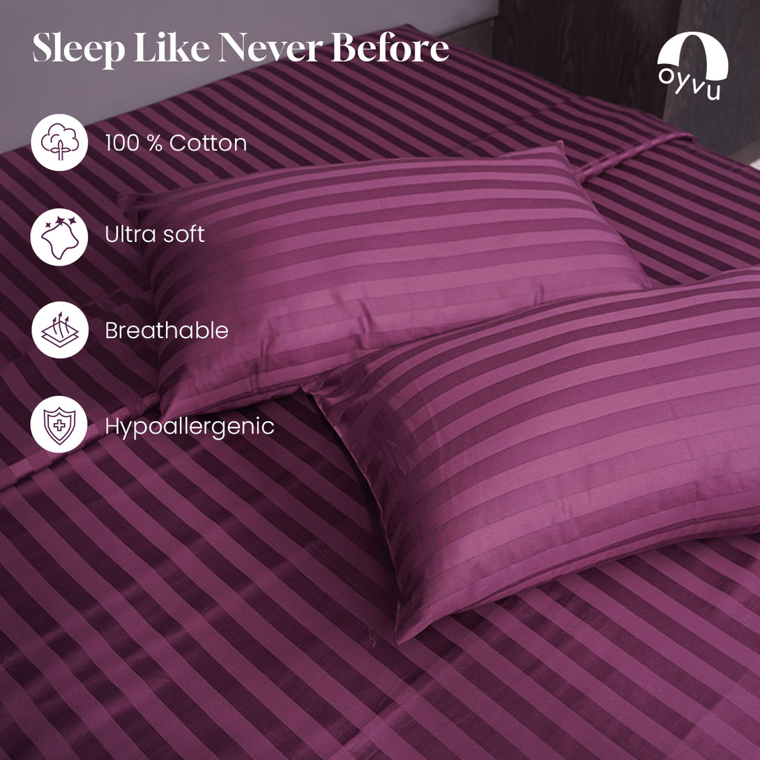 Indulge in luxury and unparalleled comfort with our 100% cotton, 500 thread count bed sheet set. The sophisticated one inch stripe pattern adds a touch of elegance to your bedding, showcasing your impeccable style. Experience a blissful sleep enveloped in the supreme softness and refinement of our high quality cotton sheets.