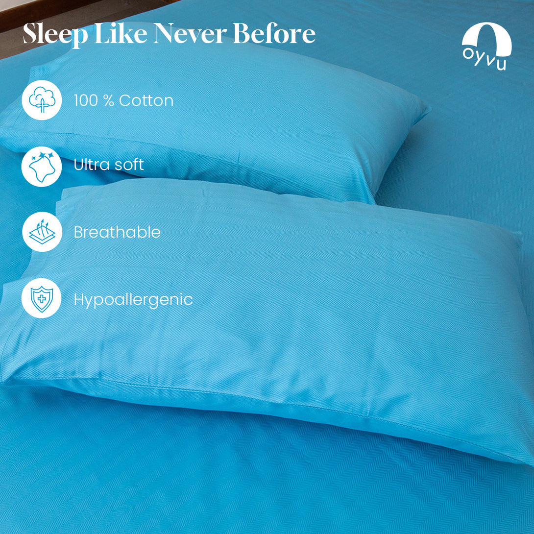 Heritage Blue, 400TC, Herringbone Bedsheet Set