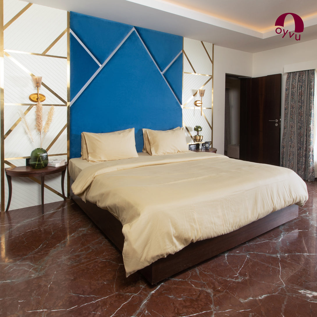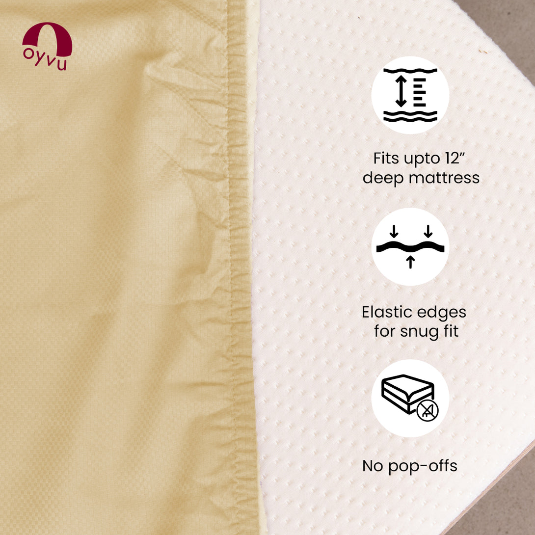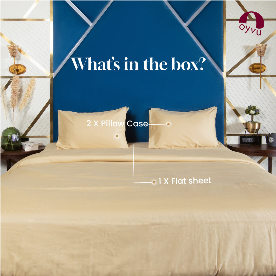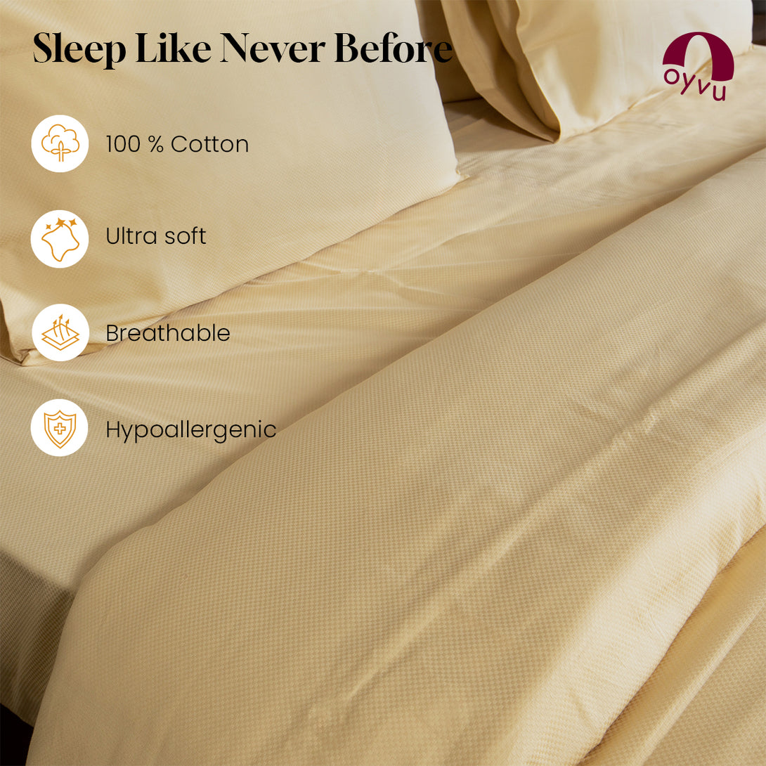 Almond Buff, 300TC, Microchecks Bedsheet Set