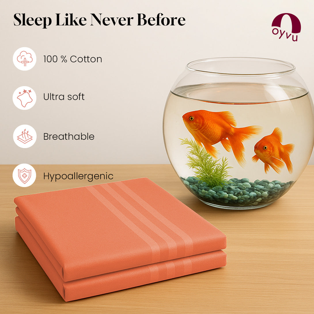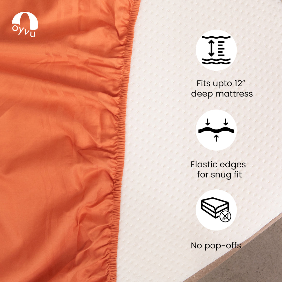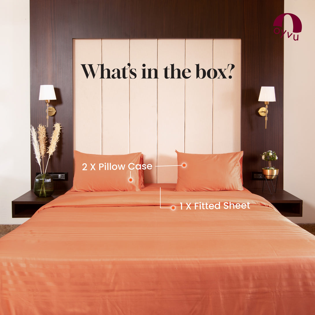 Apricot Brandy, 300TC, Horizontal Stripes Bedsheet Set
