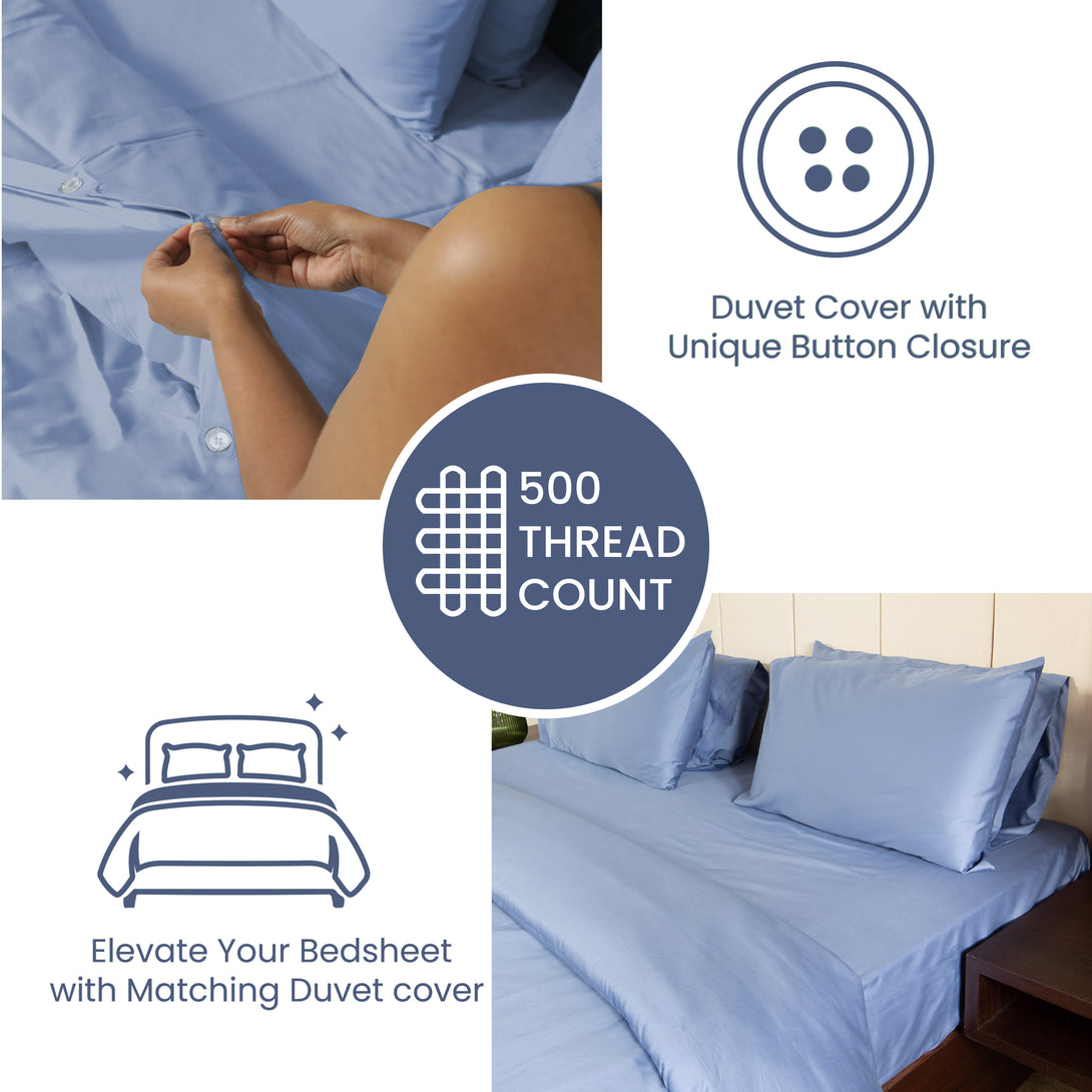 Introducing the Duvet Cover, a testament to luxury with its 500-thread count, 100% cotton fabric case that envelops your duvet, comforter, or quilt, offering a loving shield against stains, spills, and general wear. It renews your cherished comforter, prolonging its life, simplifying routines, and elevating your sleep haven with a blend of convenience and elegance. The 8-button closure ensures a secure fit, providing effortless adaptability for snug, protected comfort. The Duvet Cover smoothly slides on and off, adding practicality to maintenance. Its easy-to-wash feature means only the duvet cover requires cleaning, saving you from washing the entire comforter. No need to fuss; just remove, wash, and effortlessly enjoy. Please note, only the Duvet Cover is included. To complete your sleep haven, explore our Bedsheet collection.