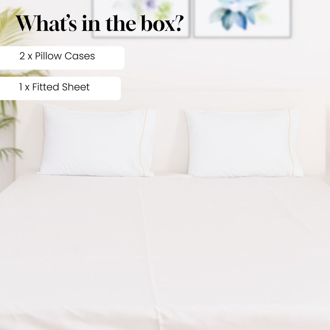 Gold Chess on White Percale, 300 TC Bedsheet Set