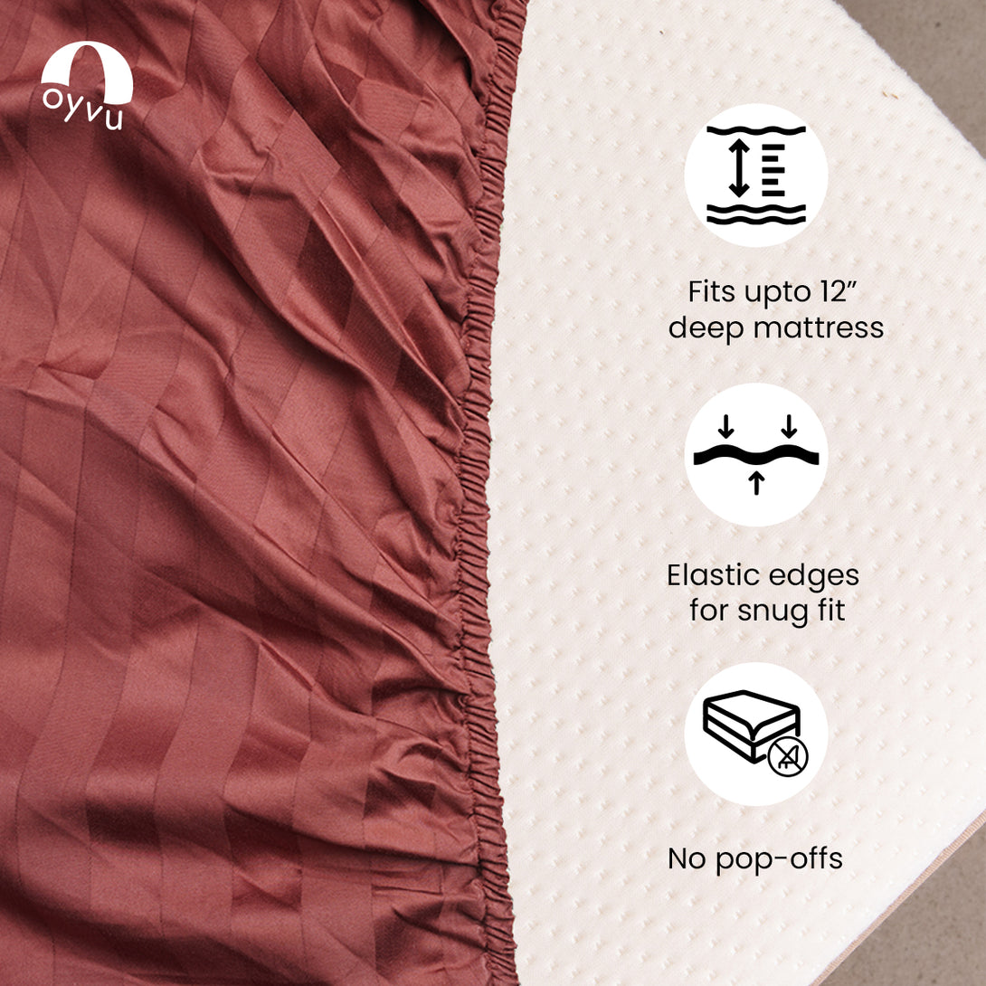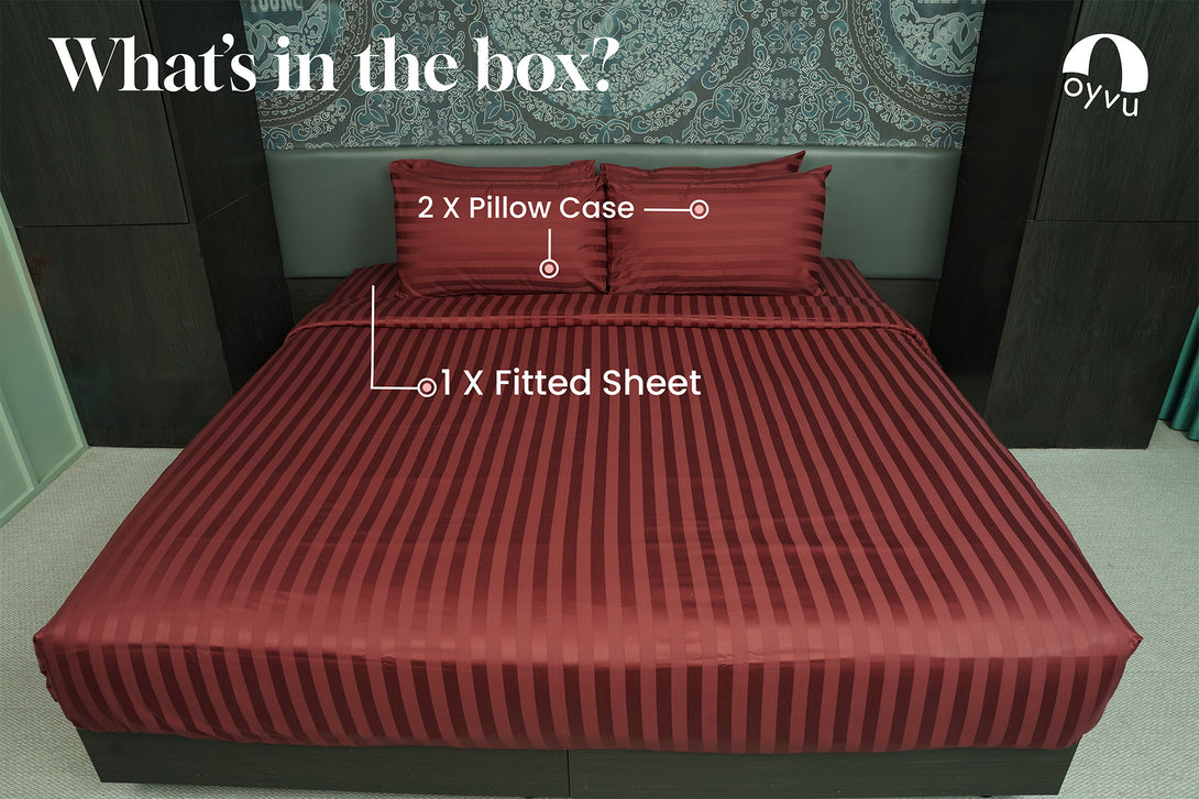 Indulge in luxury and unparalleled comfort with our 100% cotton, 500 thread count bed sheet set. The sophisticated one inch stripe pattern adds a touch of elegance to your bedding, showcasing your impeccable style. Experience a blissful sleep enveloped in the supreme softness and refinement of our high quality cotton sheets. Elevate your bedroom decor with our beautiful 500 thread count cotton sheet set in the rich and captivating color of Merlot.