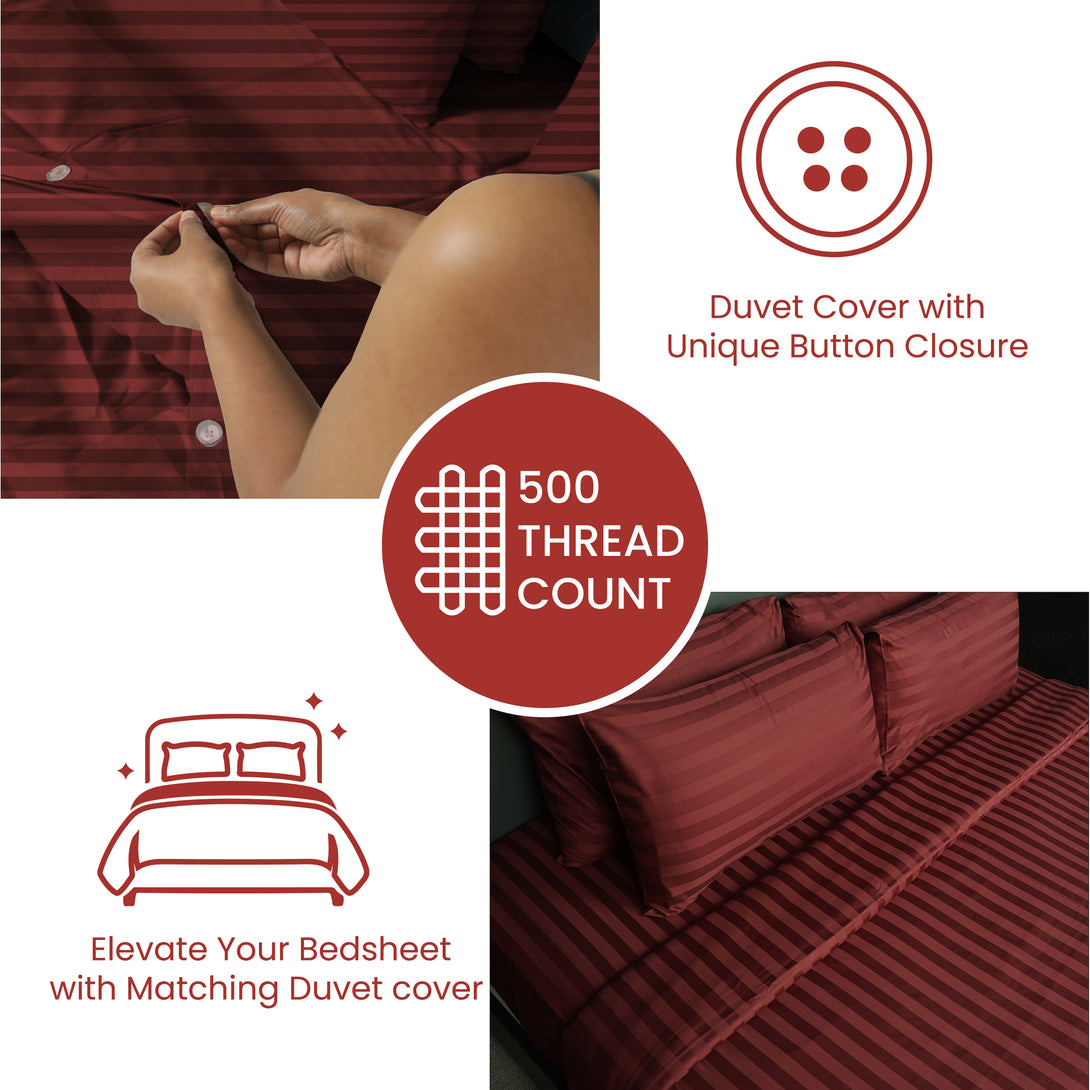 Indulge in the Opulence of our 500 thread count duvet cover, crafted from 100% cotton. Presenting the Duvet Cover, an innovative fabric case enveloping your duvet, comforter, or quilt. It shields against stains, spills, and wear, breathing new life into your comforter, simplifying your routine, and enhancing your sleep haven with convenience and elegance.The 8-button closure ensures a secure fit, and the easy-to-wash feature means only the duvet cover requires cleaning. Enjoy effortless maintenance and comfort. Indulge in our duvet cover's breathable and natural comfort, and transform your bedroom into a haven of relaxation. Enjoy a restful night's sleep wrapped in the timeless charm of this duvet cover.This product comes only with the Duvet Cover. Complete your sleep haven by shopping your matching Bedsheet collection.