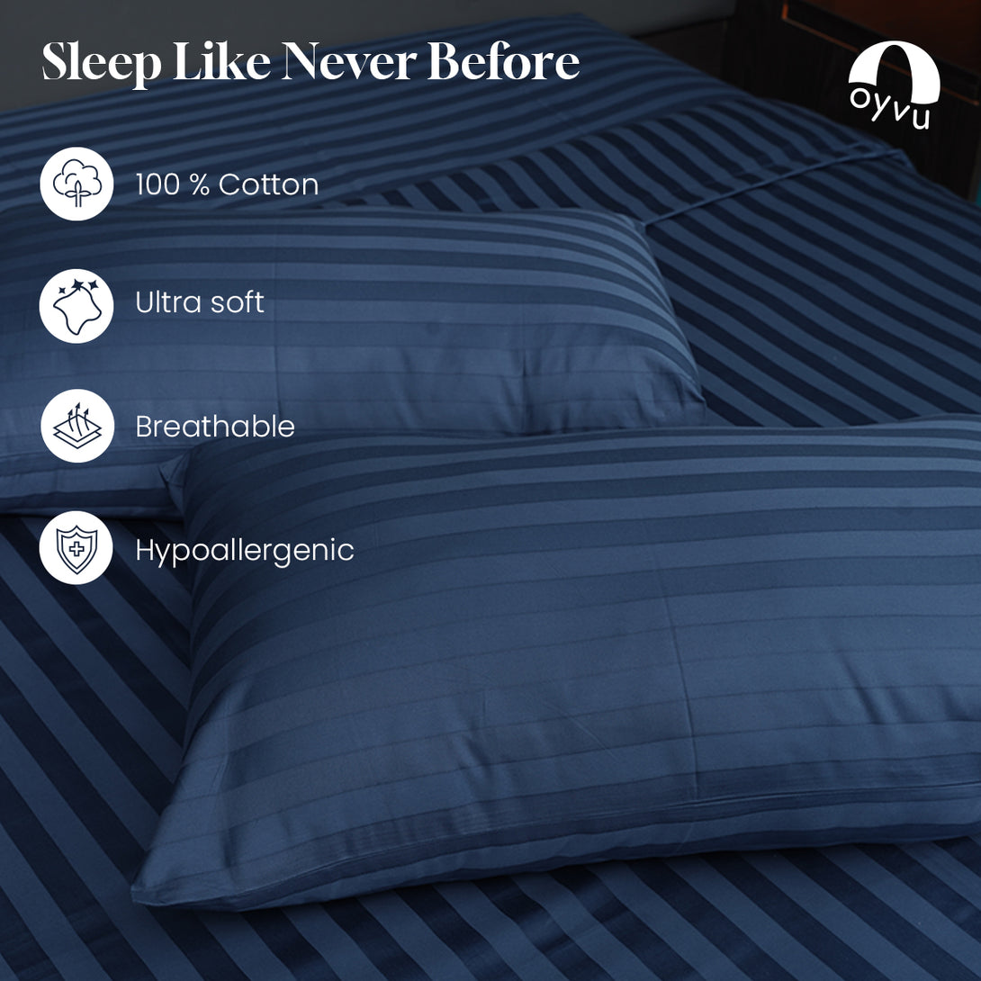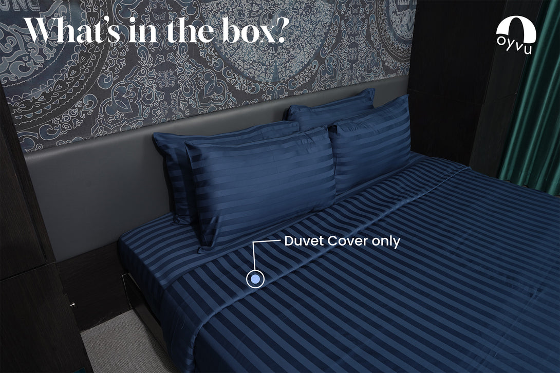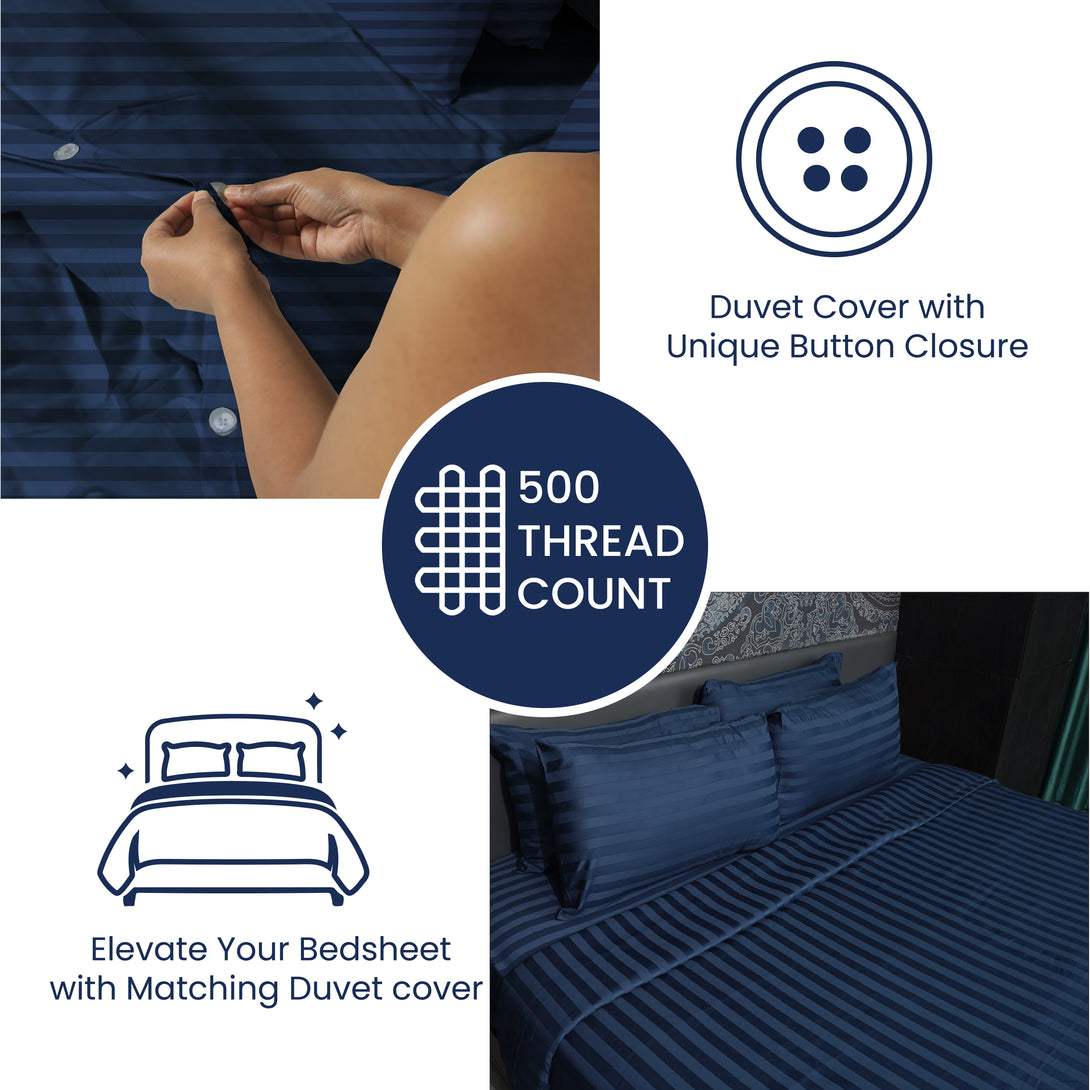 Indulge in the Opulence of our 500 thread count duvet cover, crafted from 100% cotton. Presenting the Duvet Cover, an innovative fabric case enveloping your duvet, comforter, or quilt. It shields against stains, spills, and wear, breathing new life into your comforter, simplifying your routine, and enhancing your sleep haven with convenience and elegance.The 8-button closure ensures a secure fit, and the easy-to-wash feature means only the duvet cover requires cleaning. Enjoy effortless maintenance and comfort. Indulge in our duvet cover's breathable and natural comfort, and transform your bedroom into a haven of relaxation. Enjoy a restful night's sleep wrapped in the timeless charm of this duvet cover.This product comes only with the Duvet Cover. Complete your sleep haven by shopping your matching Bedsheet collection.